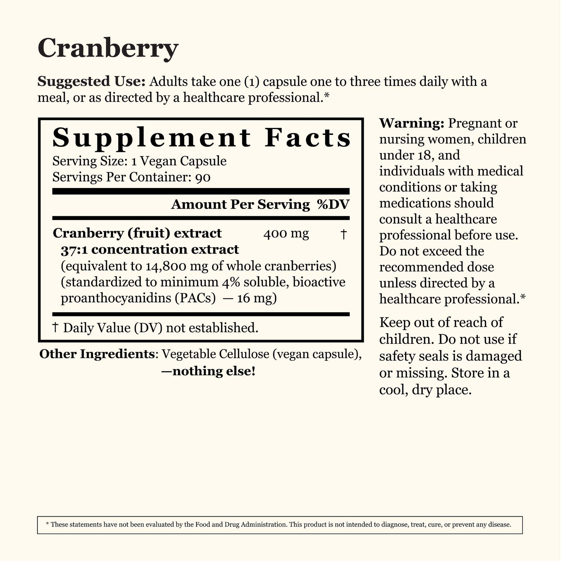 - 400 mg of Cranberry Fruit Extract Equivalent to 14,800 mg Strength per serving